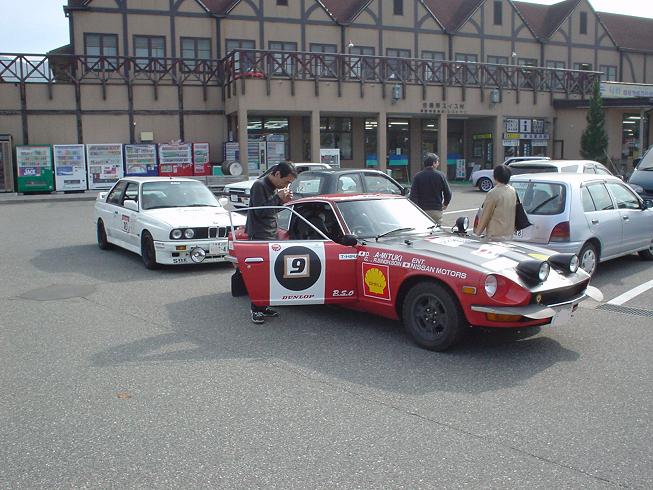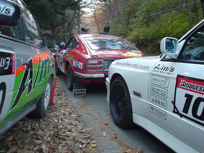 そして・・さらにはそのクルーがすごい。自分の世代のドライバーにとっては大大先輩の横山文一氏。自分にとっては伝説!?の選手です。そしてそのコドライバーは日本を代表する往年の(現役ですが)コドライバー、中原さん。中原さんといえば、岩下ドライバーとともにサファリに何度も挑戦している日本の国際コドライバーのパイオニアな方。中原さんには以前WRCでも自分の隣に乗ってもらったことのあるのでなんとなく身近な存在とはいえ、やはり240Zの横に乗る姿は“後光”が射してます・・・。