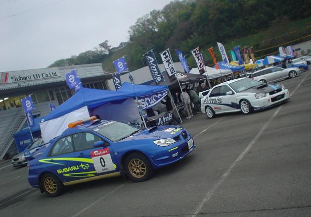 1週間前までロールケージ改修でバラバラだったのに、そのあと組み立てて、塗装して、カッティングシート貼ってです。よくも間に合ったと1週間前の姿を振り返ってみると本当に不思議な気分。自分のクルマだけど、会社の業務としてはセカンドプライオリティ。なのに譲れない?変な気合で強引間に合わせ。スタッフ一同の協力に本当に感謝です。
