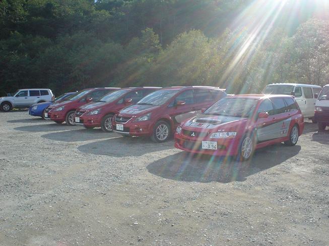 ワークスと同じカラーリングをされたオフィシャルカー。三菱、気合はいってます!