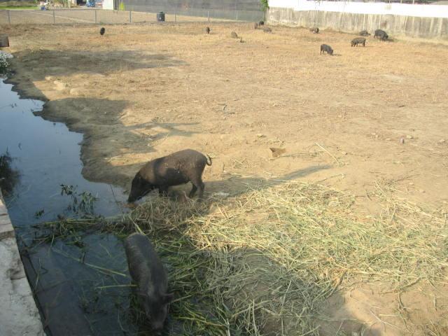 そういえば、“ディフェンダーの館”にはこんな動物たちが。イノシシです。隣の空き地に放し飼い。ディフェンダーと戯れています。時たまいたずら心に脱走を試みる輩があり。そのときは牧羊犬ならぬ牧猪犬が大活躍!