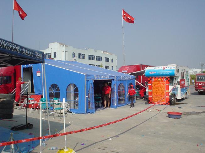 見てください、このWRC並のサービスパーク。チャイナチームはモーターホームどころかトラック変身のバイキングレストラン(シェフが料理)まであります。これはこのコラムのタイランドラリーでも紹介した紅河チーム・・・恐るべし中国ラリー。バブリーです。