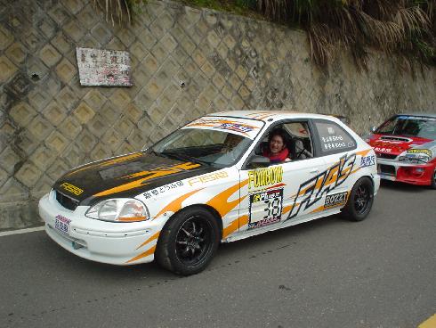 これが、SS1ぶっちぎりベストタイムだったシビック。B18改2L?仕様。外見はごく普通のシビックです。台湾ではインプレッサとシビックがトップ争いをすることが多いんです。かつてのWRCのように2リッターのFF車が4WDターボを負かすなんてことは良くあります。これは走るほうも見ているほうもエキサイティング。