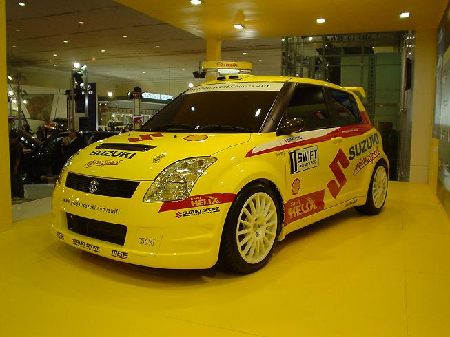 こちらは SWIFTキットカー。でも幻?の5ドアバージョンです。日本で発売のノーマル5ドアSWIFTも洗練されたデザインのコンパクトハッチですが、こうやってラリーカーにしても特に違和感無し。カラーリングがインパクトあるので、はっきり行って3ドアも5ドアも言われなければわかりません。