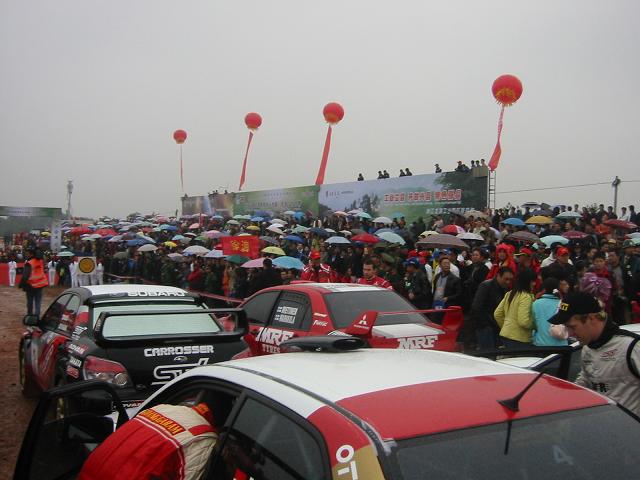 延々ハイウェイをひた走りやっとのことでLONGYOUに到着。さっそく市街地からスーパーSSに向かうラリーカーの一群とすれちがったので、それを指差して『追え~!』と。若いタクシー運ちゃん、めったに見たことのない数台のラリーカーにすっかり興奮気味。前を走るスバルオーストラリアのスペアカーをおっかけてパッシングとクラクションの嵐。