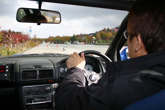 SSレッキ中の風景。パイロンコースではありますが、雰囲気をつかんでもらうために自分がドライブしてエントラントを1人1人横に乗せてペースノートを読み上げます。コドライバーは助手席でそれを書き取り。