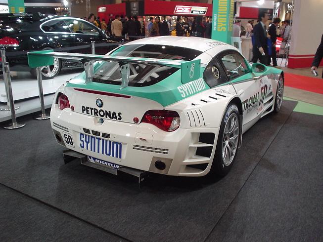 これは先日オートサロン(←今頃この話題かよ・・と怒られそうですが)に行ったときになんとなく“おっカッコいい!”と思って撮った写真。後ろから見ると一瞬なんだろう・・と思わなくもないこのマシンのベースはBMWのZ4、Mクーペです。Z3も悪くないけど、Z4のサイドのプレスラインやロングノーズショートデッキなんかのシルエットも初めて首都高で遭遇した時に軽い衝撃があるほどの初対面だっただけに、なんとなく気になっている一台。そんなZ4ベースのレースカーともなれば、そりゃあ気になります。ついでに私にとってはマレーシア企業のPETRONASカラーというのもインパクトがありました。(私にとってはF1カラーというよりプロトンなどのマレーシアのラリーカーって感じ!?)
